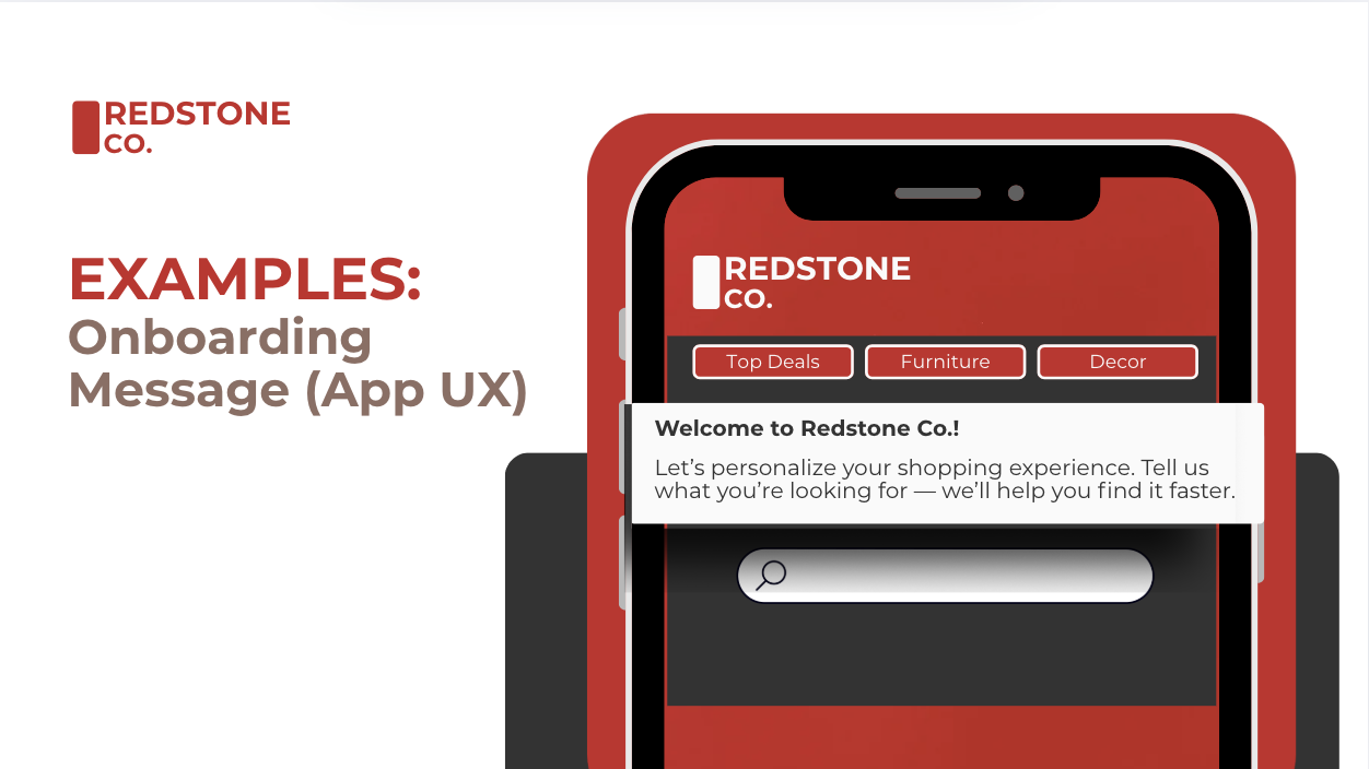 Redstone Co. is a fictional national retailer I created to showcase how brand voice, UX writing, and digital strategy work together across platforms. Inspired by companies like Target, this spec project includes a full brand guide, e-commerce landing page, cart and checkout microcopy, and mobile app onboarding flow.